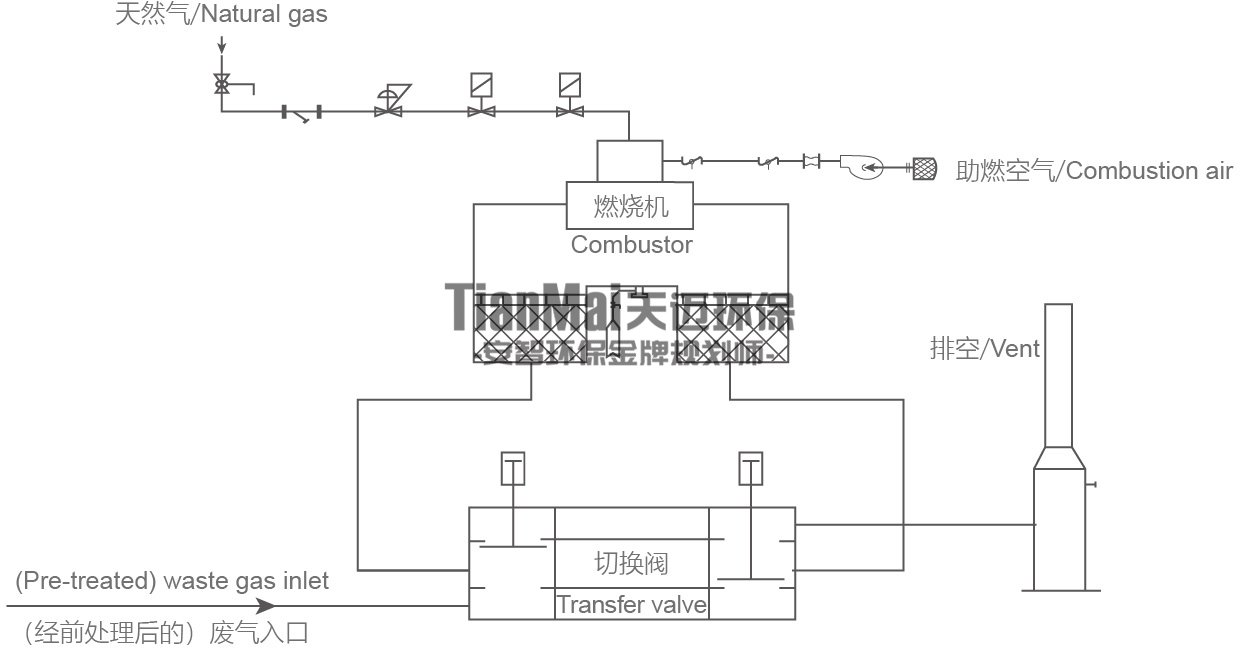 蓄熱式焚燒爐RTO系統(tǒng),由廢氣前處理干燥,過濾器,切換風(fēng)閥,燃燒爐,助燃系統(tǒng),,壓縮空氣系統(tǒng),排氣系統(tǒng)組成。